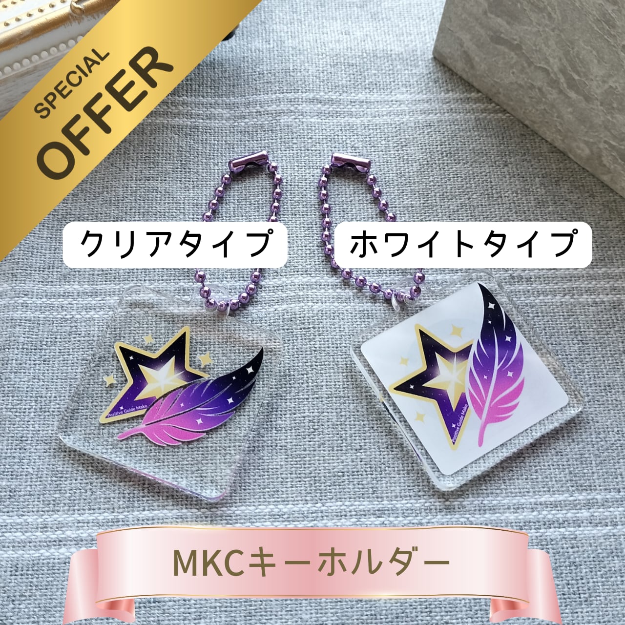 【限定販売】MKCアクリルキーホルダー2種類 ホワイトタイプ(HIGHVIBES&LUCK)/パープルボールチェーン/コットン巾着付き