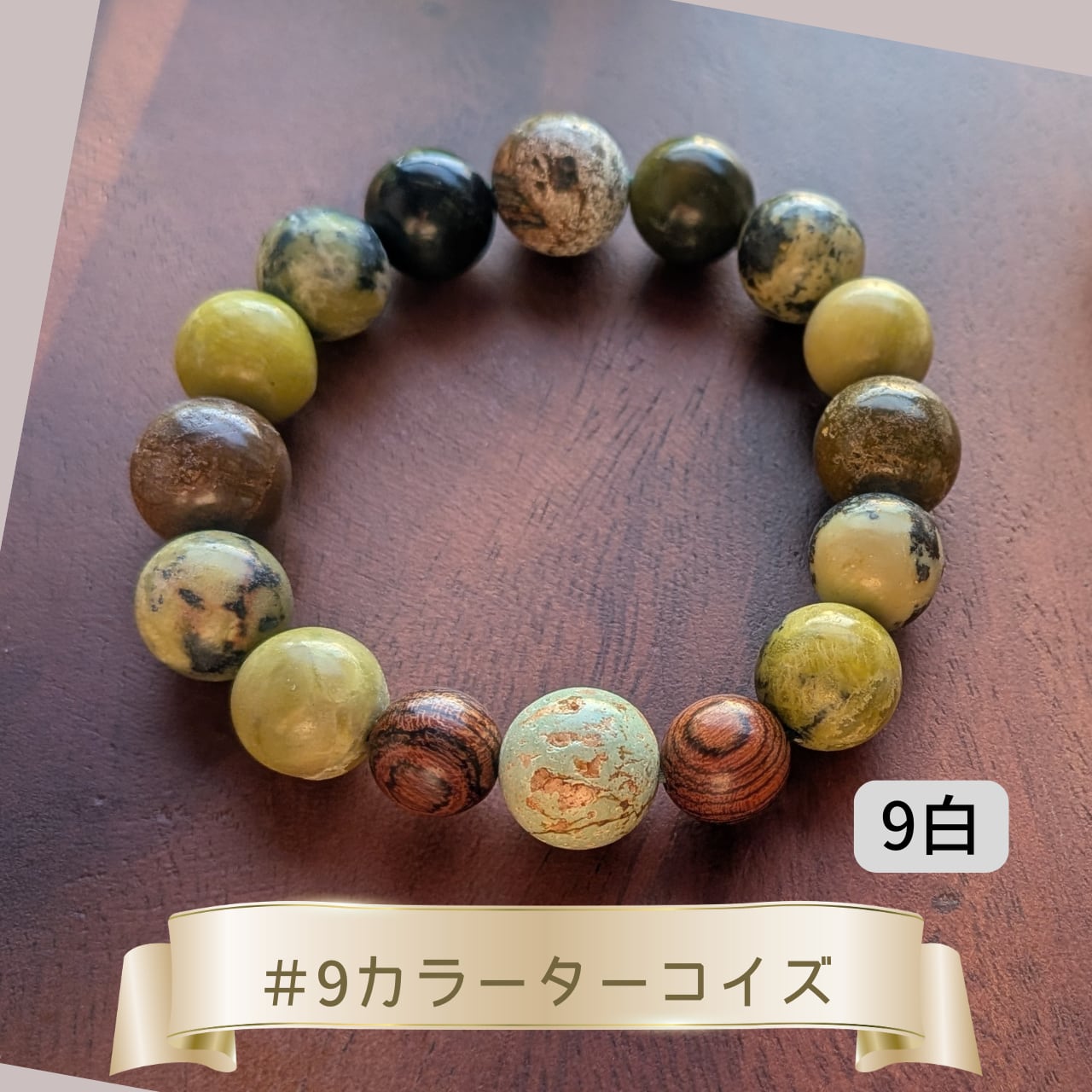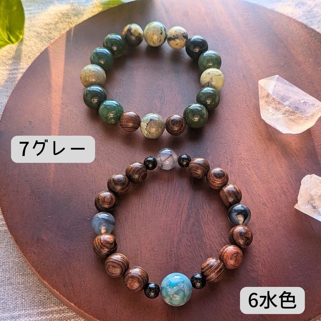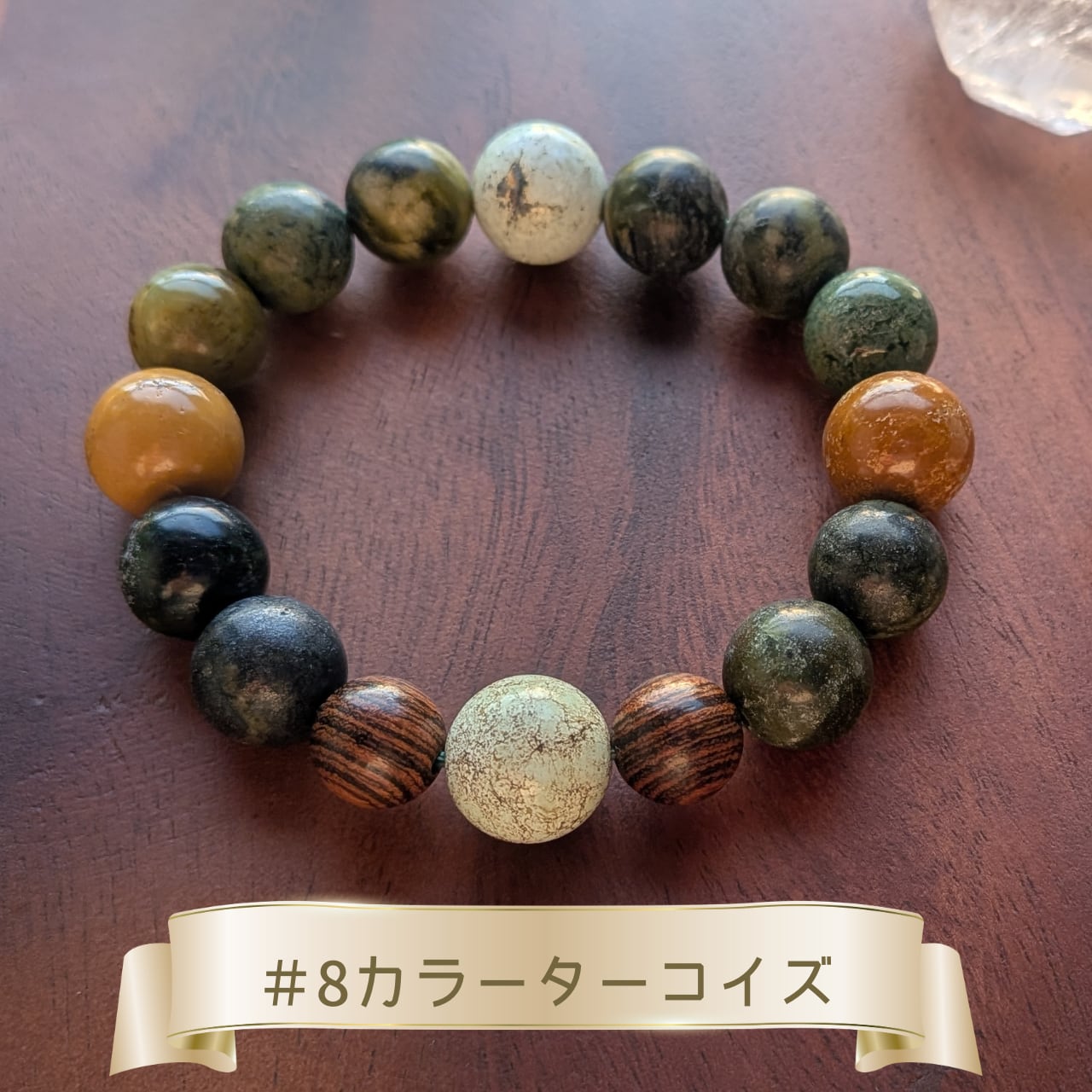 #7〜#9: Colorターコイズ(4石使用)と緑めのうを組み合わせたデザイン。ターコイズの色味によって、少しずつ異なるエネルギーを秘めています。