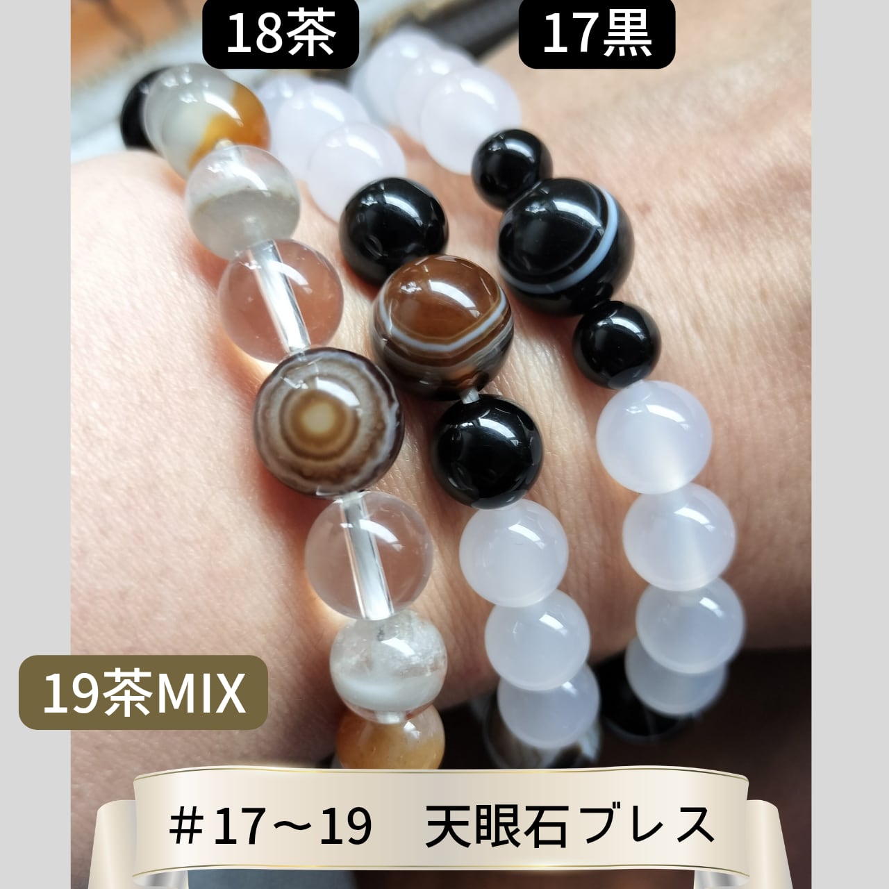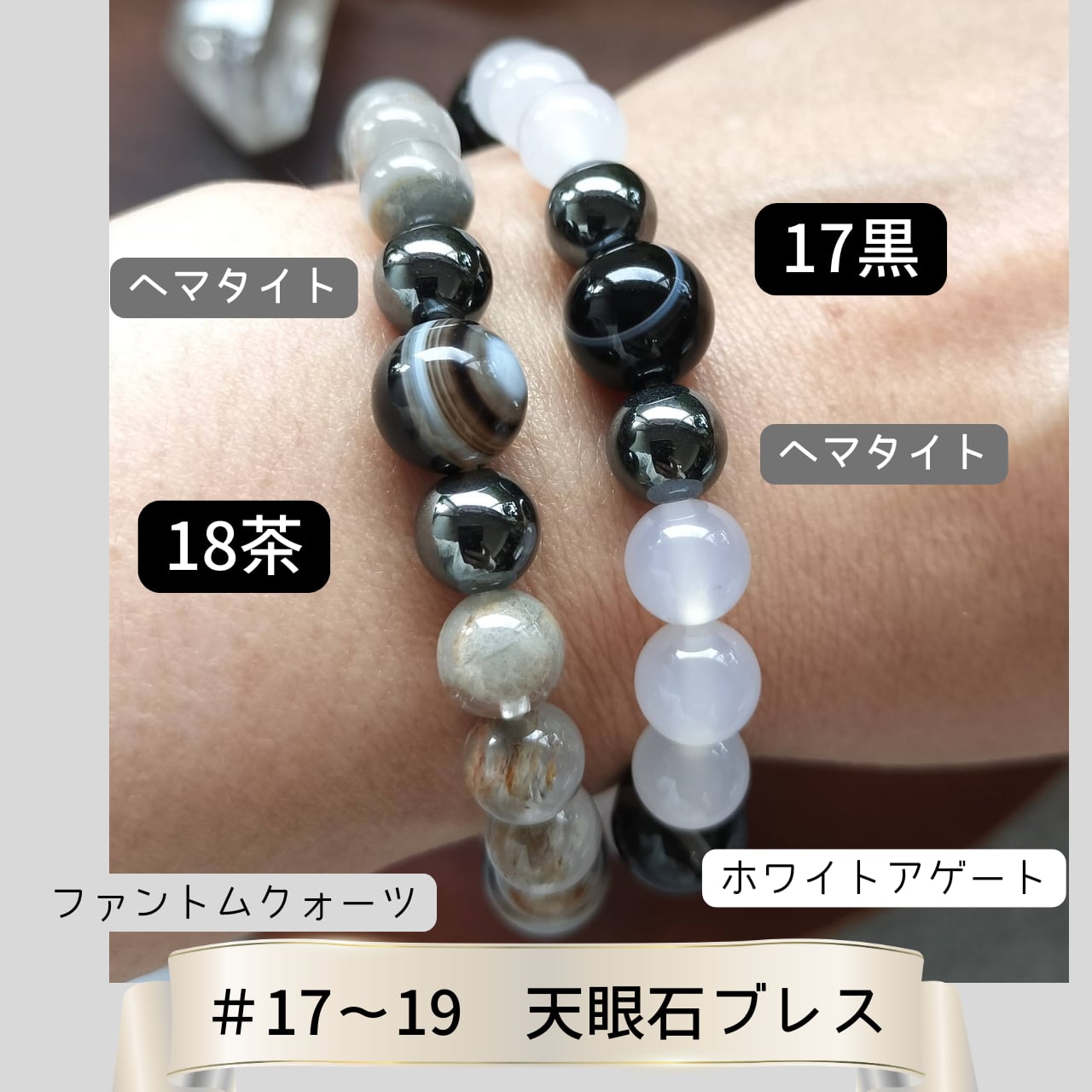 天眼石・ホワイトアゲート・ヘマタイト・オニキスの組み合わせ。