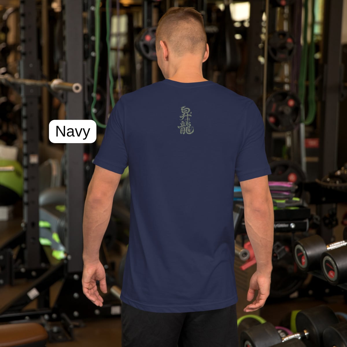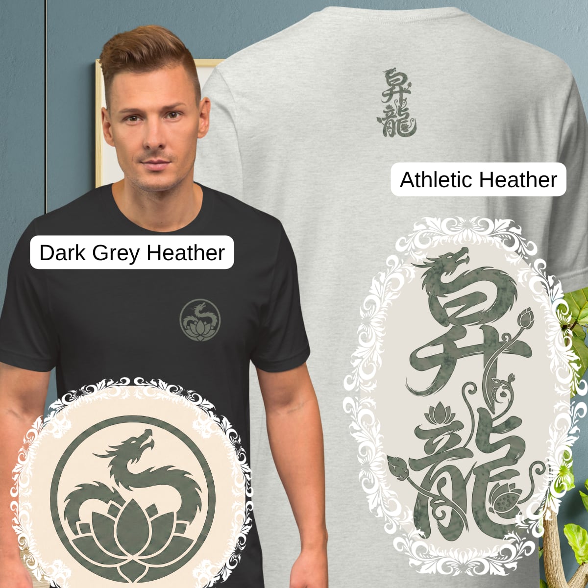 昇龍と蓮の和風Tシャツフロントにカラー花文字バージョン (Rising Dragon & Lotus) - 日本の龍・漢字イラスト・花文字デザイン - Bella Canvas 3001